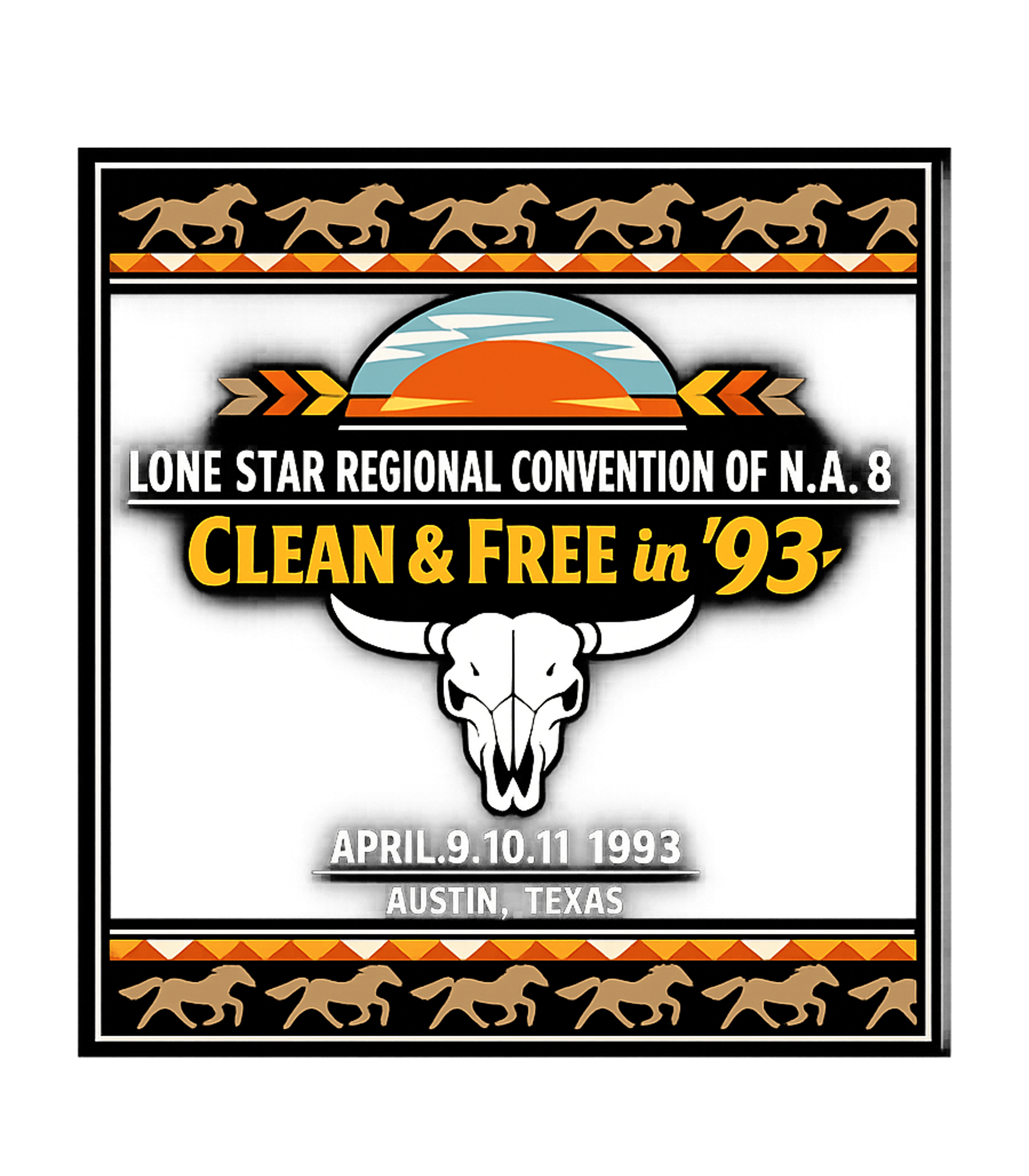 This artwork commemorates the Lone Star Regional Convention of N.A. 8, held in Austin, Texas, in April 1993. It features a blend of Western motifs and a powerful message of recovery.