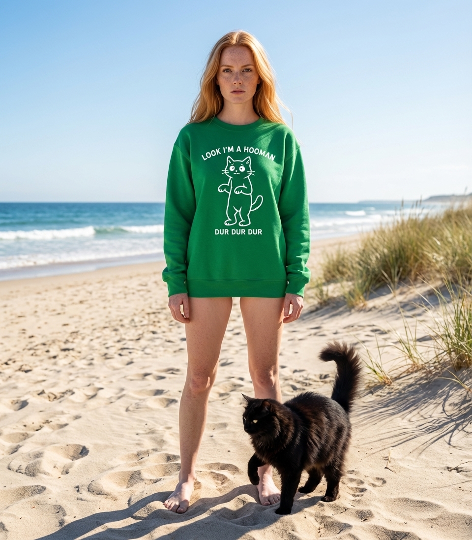 Elevate your Graphic collection with Look I'm A Hooman Women's V-Neck Tee on a Hooded Sweatshirt! Generated via Design Mixer.