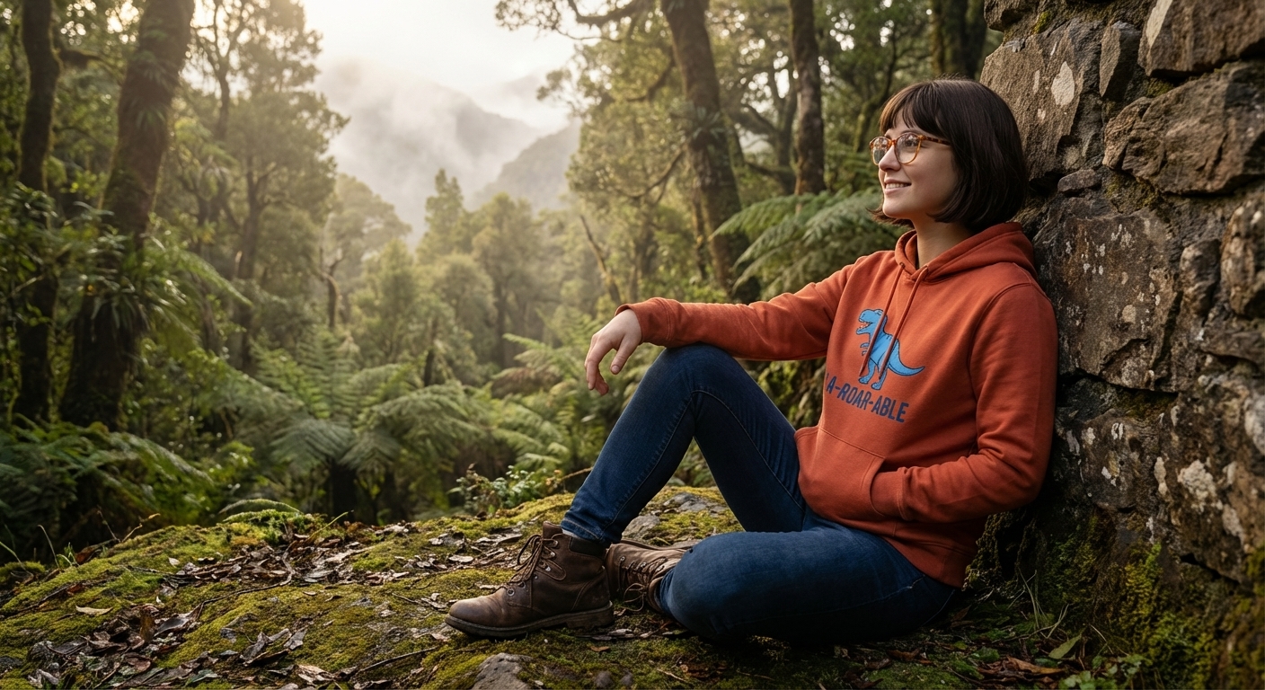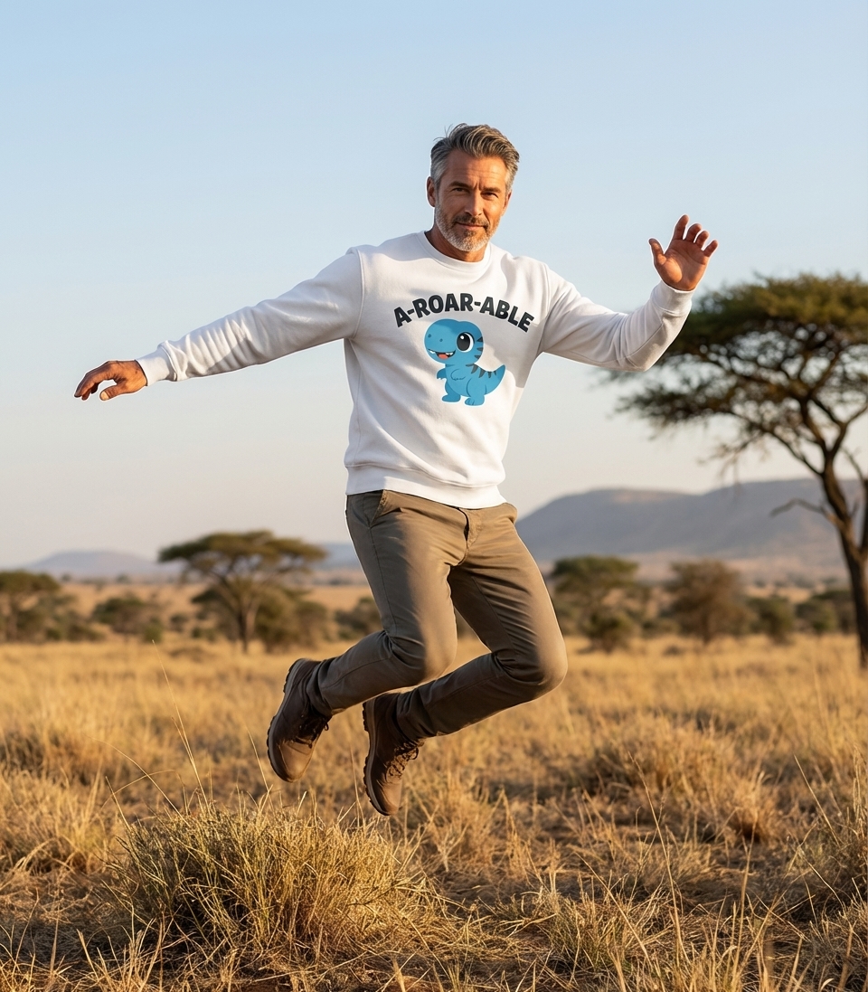 The 'A-Roar-Able' design captures the playful spirit of dinosaur lovers who appreciate cute prehistoric creatures and clever wordplay.
