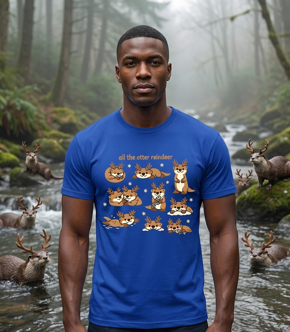 The "All the Otter Reindeer" phrase captures the joyful spirit of animal lovers who adore cute otters, embrace festive puns, and celebrate the holiday season.