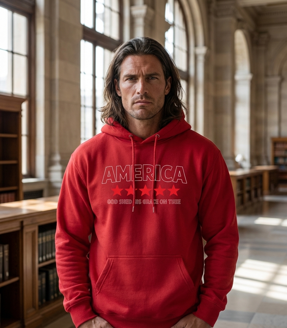 Yes! Check the style selector above to see all available options including hoodies and sweatshirts for the America God Shed Grace graphic.