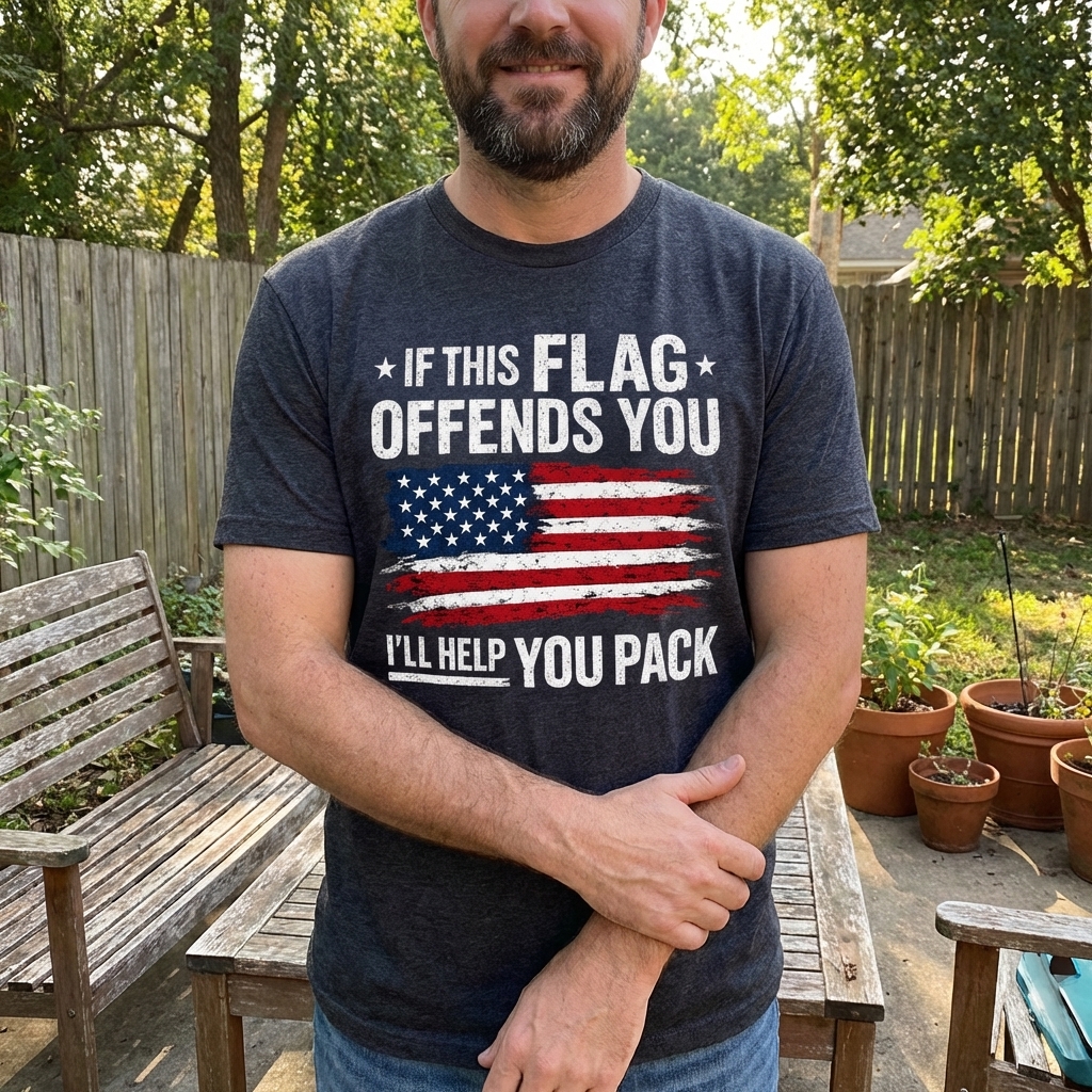 The 'If This Flag Offends You' phrase captures the steadfast spirit of patriotic Americans who spend their days celebrating national heritage, advocating for freedom, and showing unwavering pride.