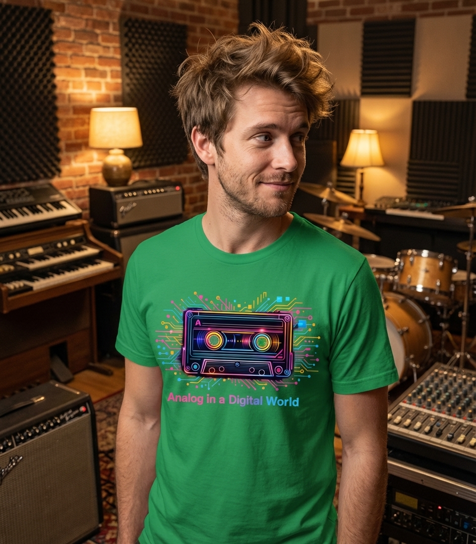'Analog in a Digital World' speaks to those who value the tangible and nostalgic aspects of older technologies like cassette tapes, even amidst today's pervasive digital landscape. It celebrates the enduring charm of vintage formats and their unique place in modern culture, highlighting a preference for classic experiences.