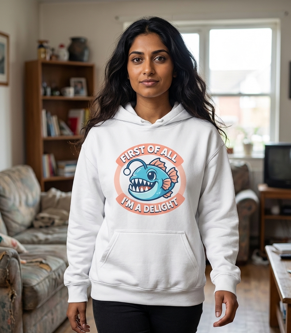 The "First of All, I'm a Delight" phrase captures the lifestyle of those who embrace their unique personality, charm others with unexpected wit, and confidently express their true, delightful selves.