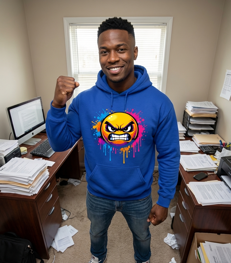 This vibrant angry emoji design captures the spirit of those who embrace their feelings of frustration, annoyance, and occasional rage with bold style.