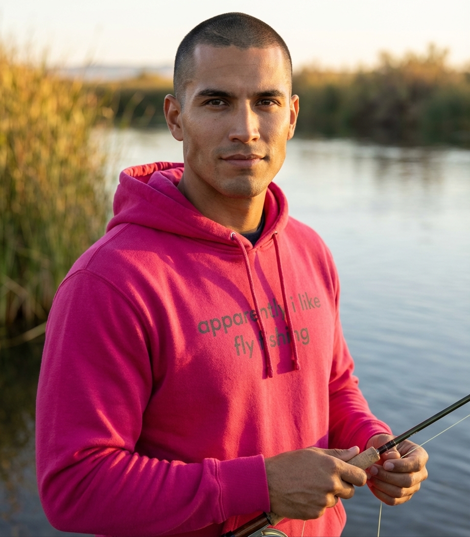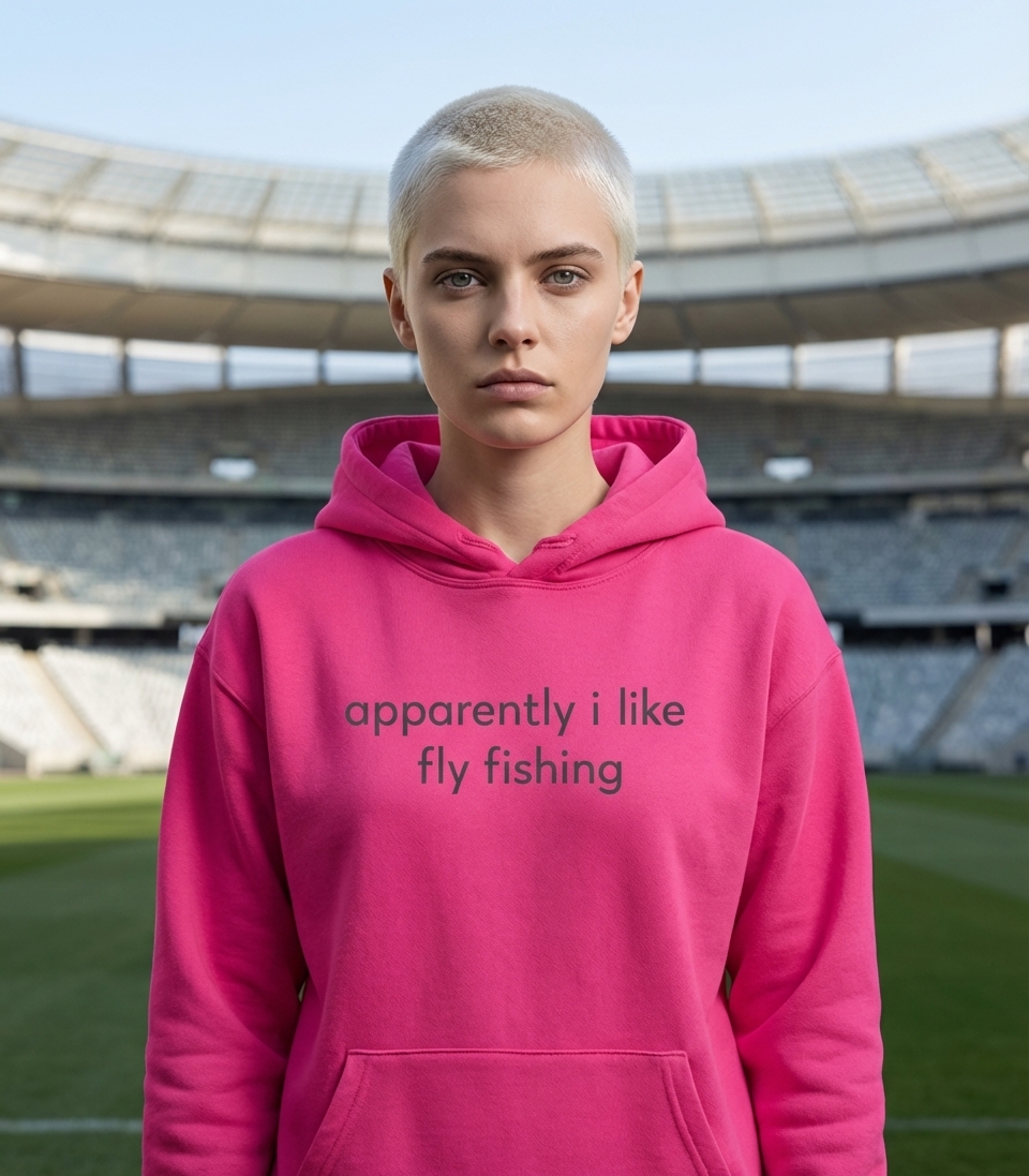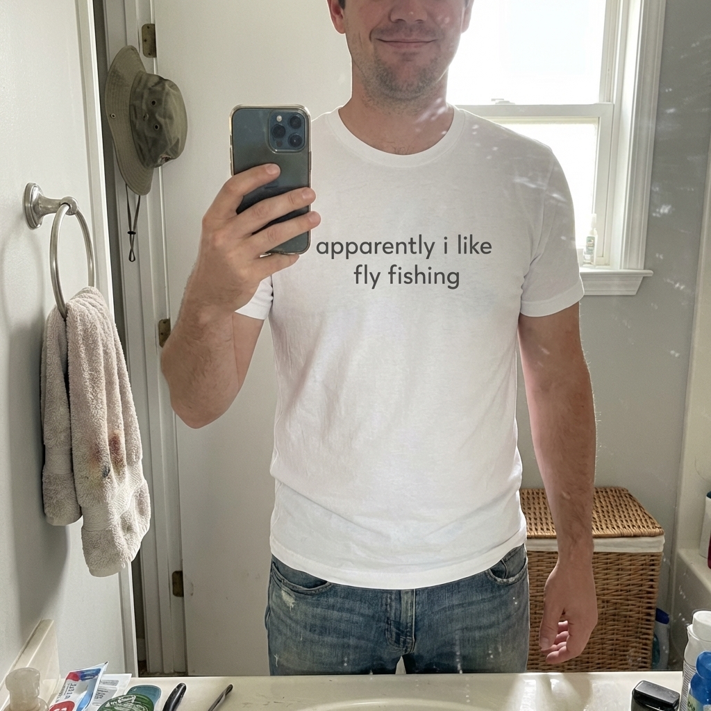 This 'Apparently I Like Fly Fishing' design captures the quiet realization of a newfound passion for casting lines and embracing the peaceful outdoors.