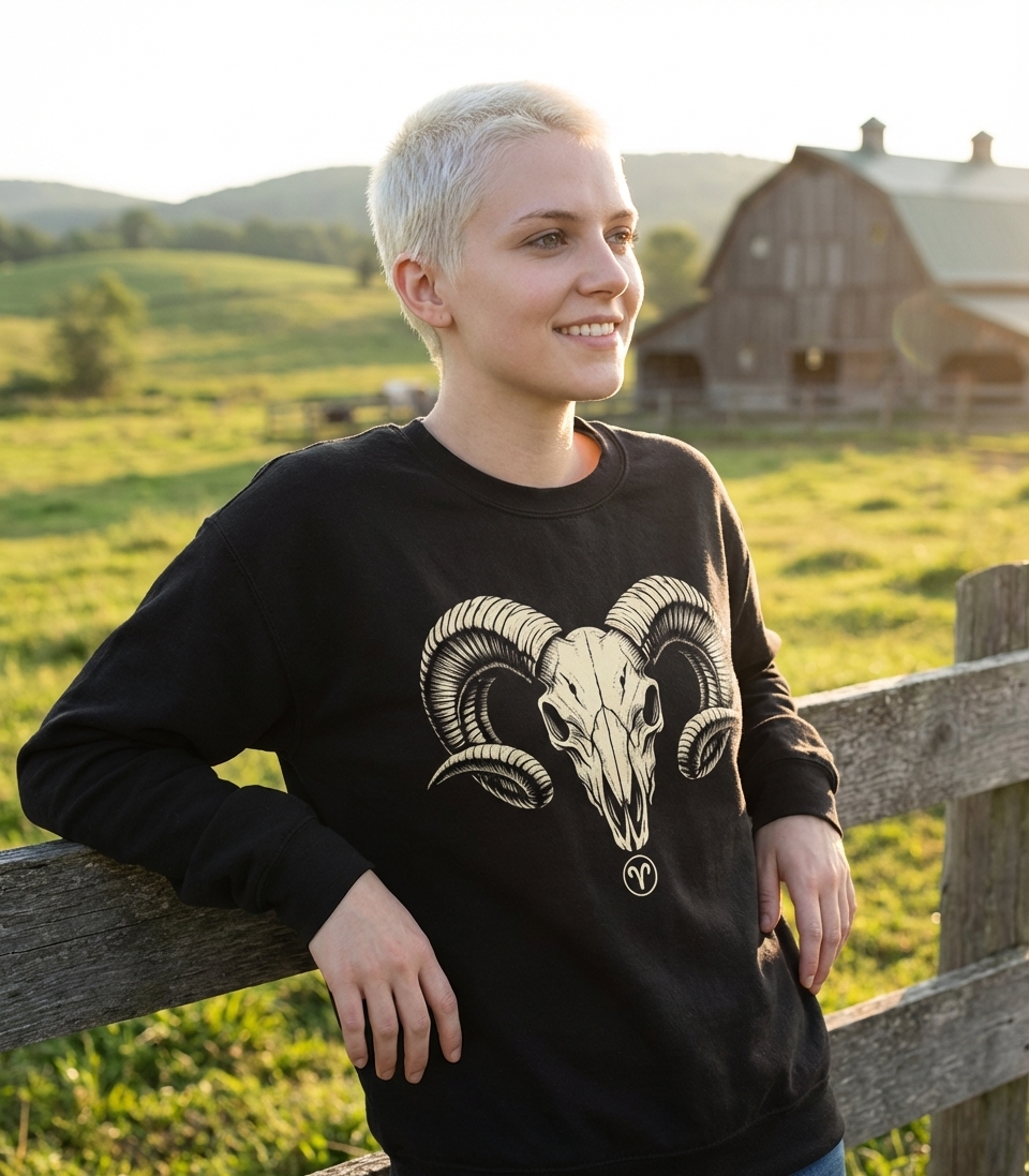 The Aries Ram Skull design captures the powerful essence of the zodiac sign for those who embody strength, leadership, and bold individuality.