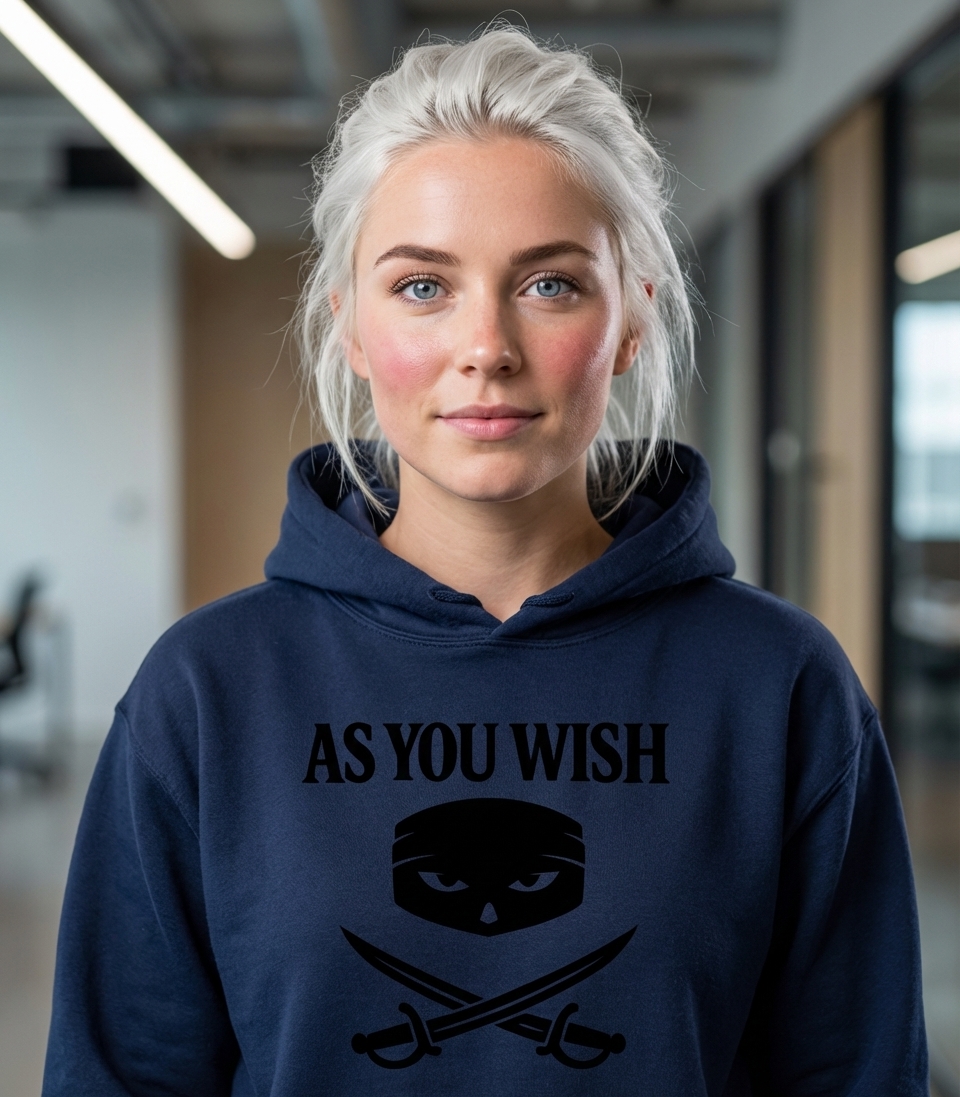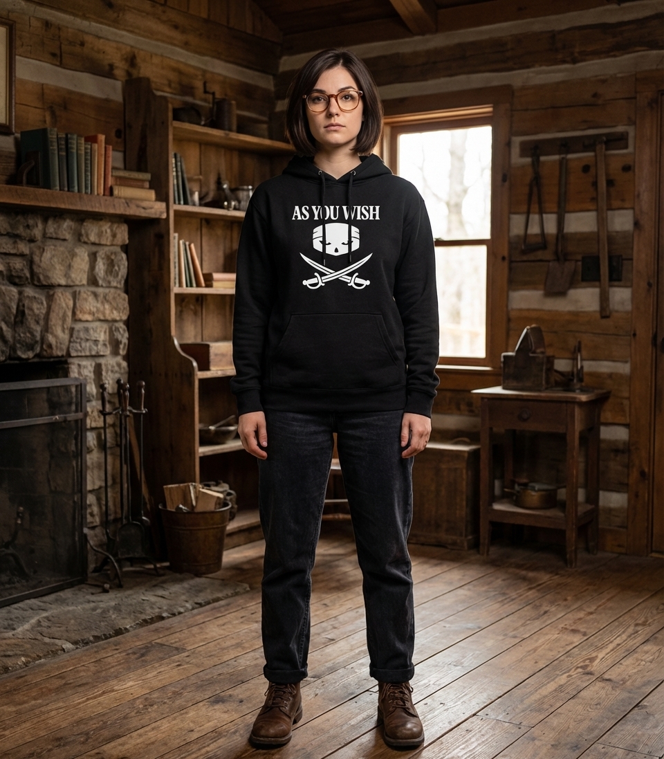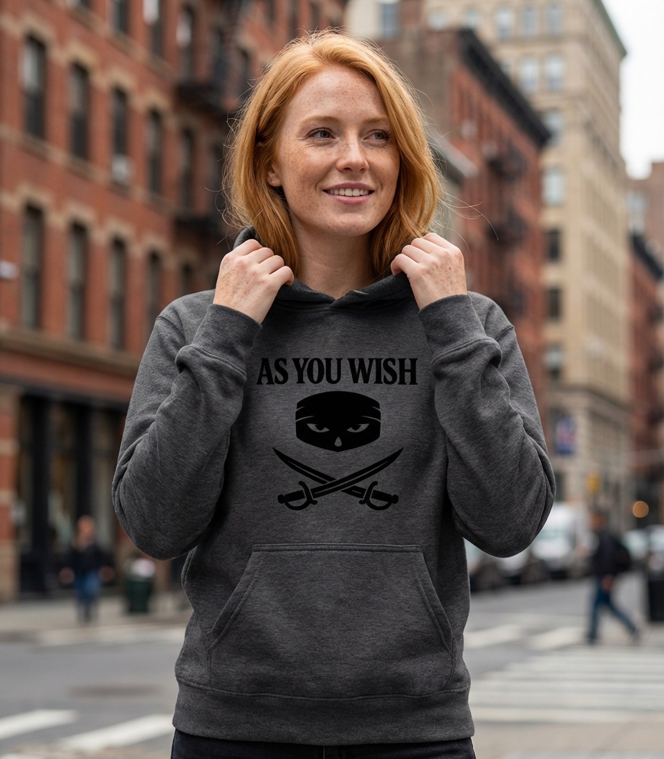 Elevate your Graphic collection with As You Wish Women's V-Neck Tee on a Hooded Sweatshirt! Generated via Design Mixer.