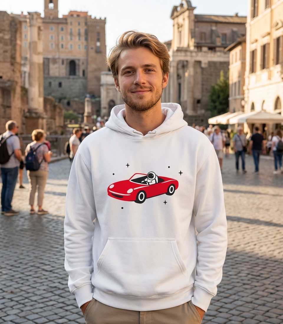 The visual narrative of an astronaut in a car in space signifies the boundless nature of dreams and exploration. It suggests that even everyday objects can become tools for incredible journeys when combined with ambition and curiosity.