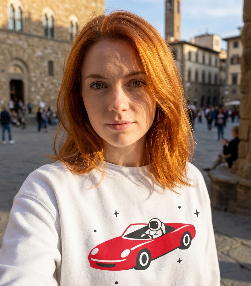 It evokes a sense of adventure, limitless possibilities, and a playful imagination, merging the ordinary act of driving with the extraordinary realm of space exploration.