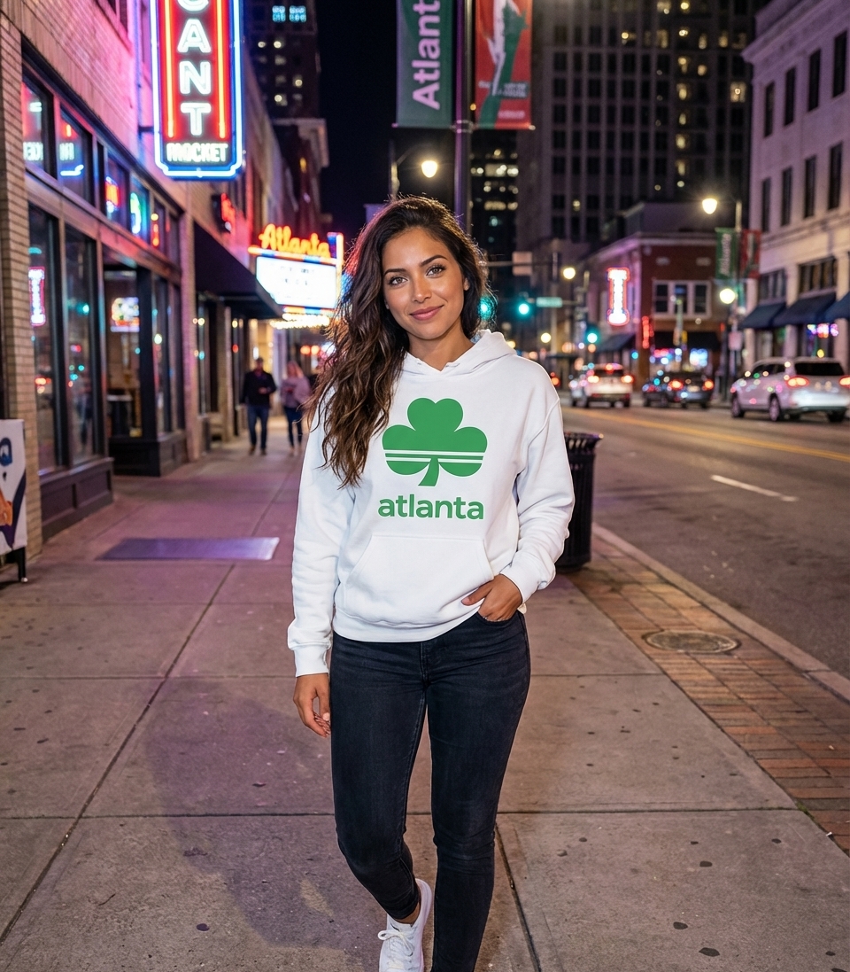 This unique design captures the festive spirit of Atlanta residents celebrating St. Patrick's Day with local pride and classic style.