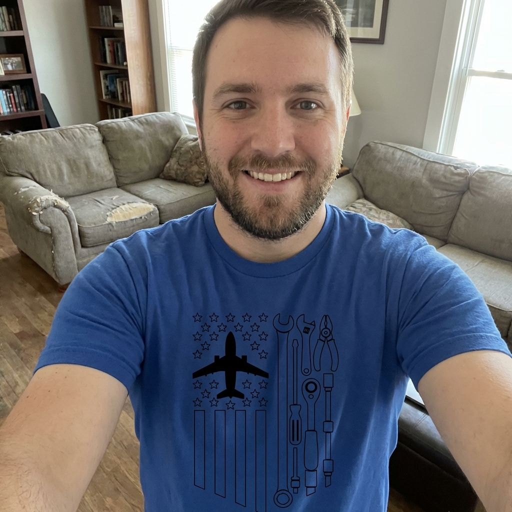 okay so this shirt? totally dig it. the aviation mechanic flag design is surprisingly cool and understated, perfect for someone who appreciates the theme without being too loud. plus, it's super comfy, definitely recommend.