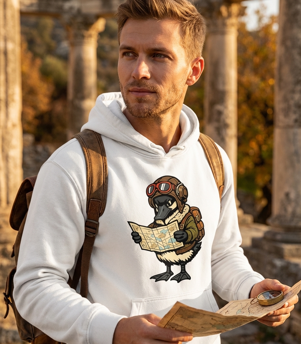 The aviator duck explorer design captures the spirit of passionate travelers who spend their days navigating, planning routes, and dreaming of new destinations.