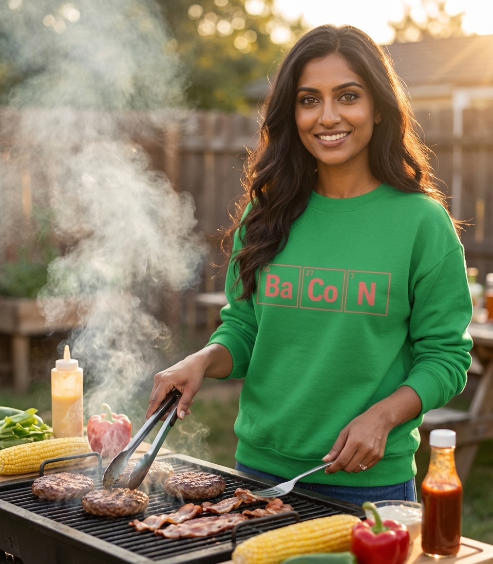 This "BACON" design playfully combines chemistry and culinary passion for those who appreciate a smart, delicious pun.