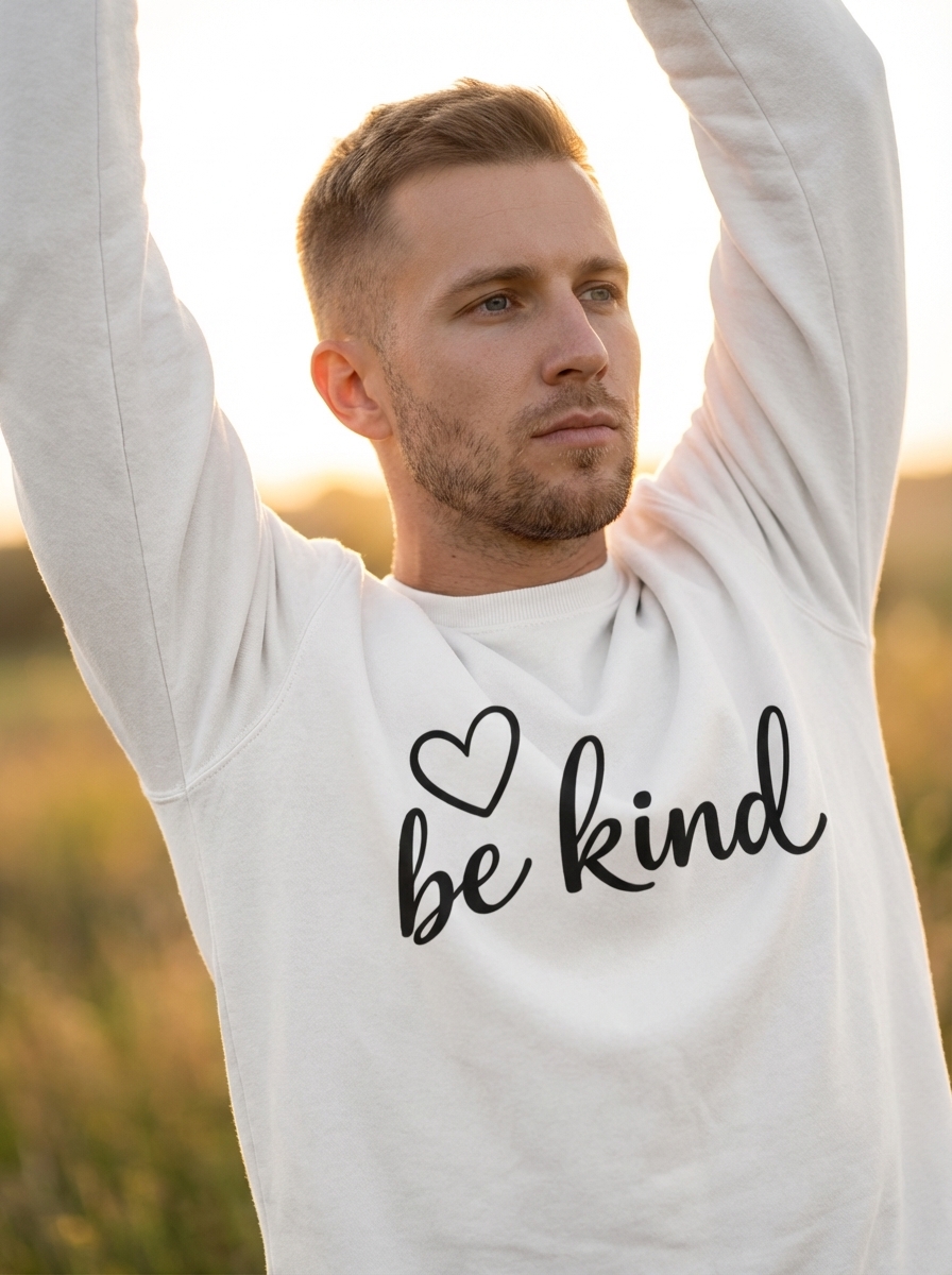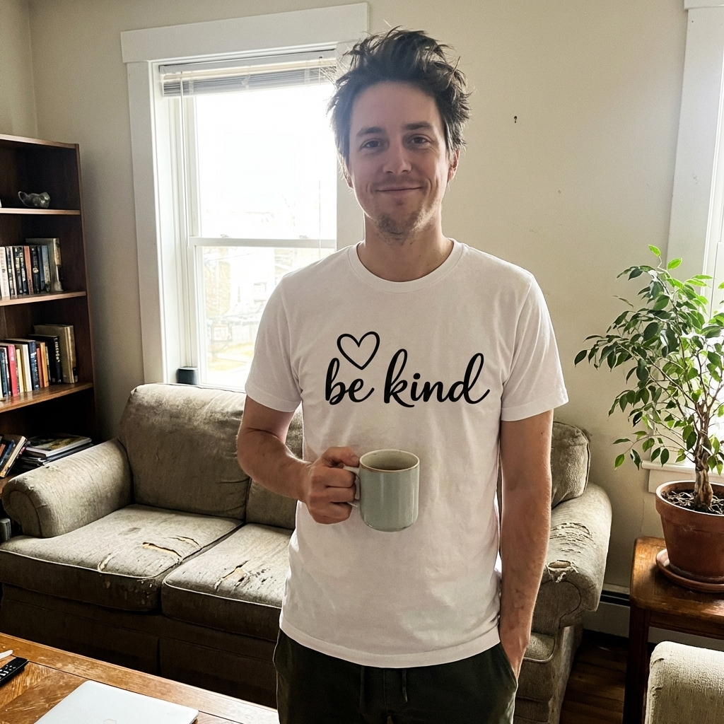 The 'Be Kind' phrase captures the lifestyle of thoughtful individuals who promote compassion, empathy, and positive interactions in their daily lives.