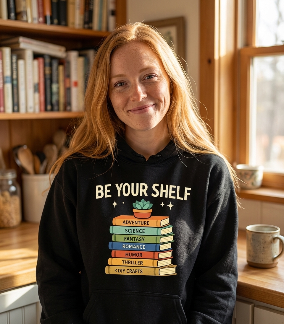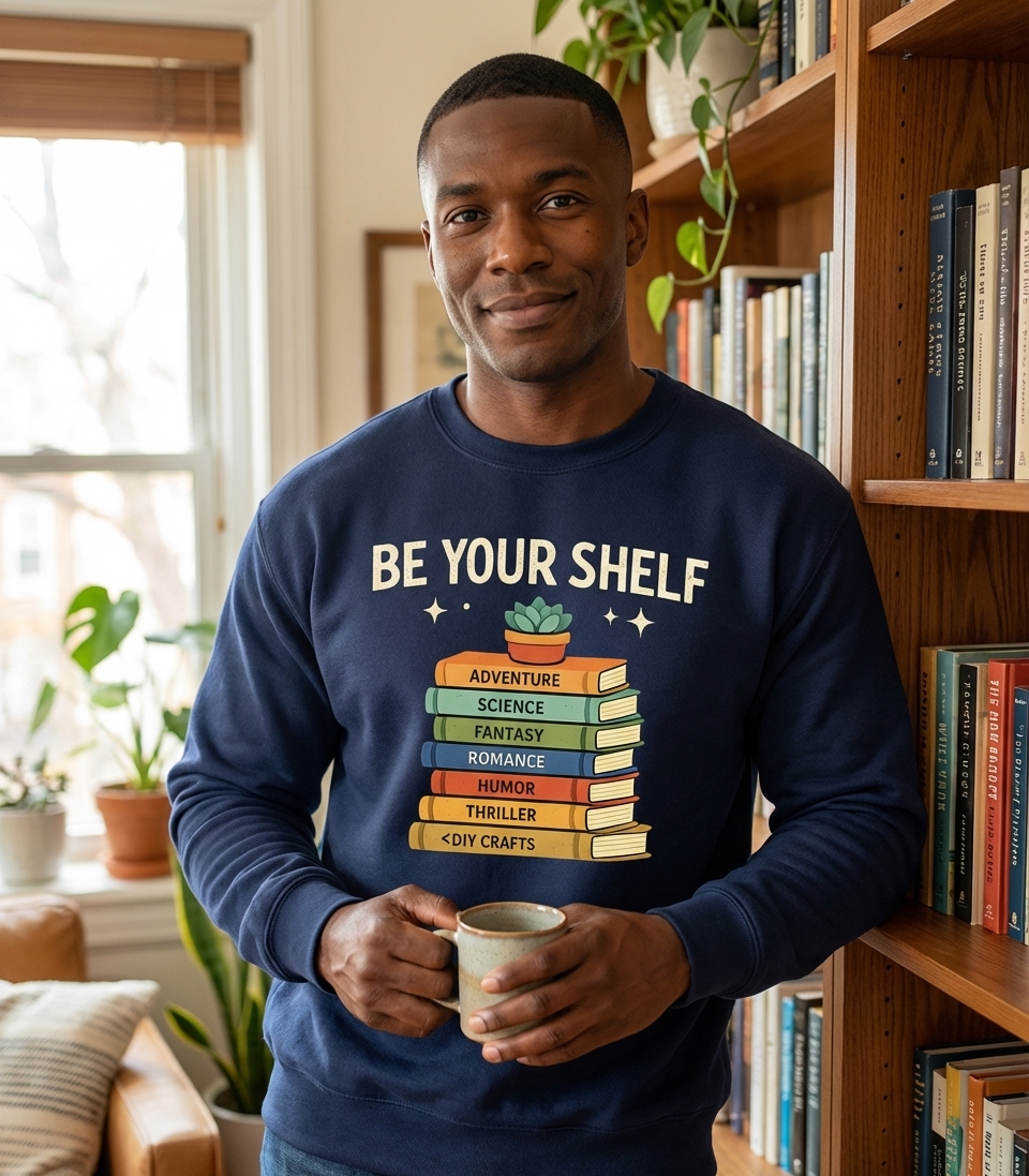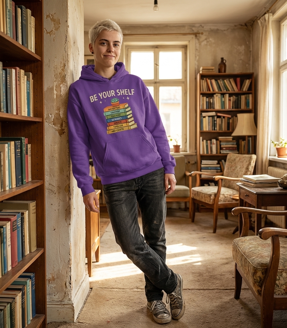 The 'Be Your Shelf' phrase captures the lifestyle of passionate book lovers who celebrate diverse genres, embrace individuality, and find joy in the world of literature.
