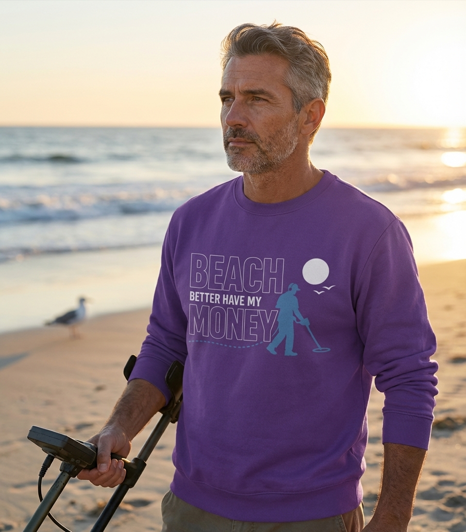 The 'Beach Better Have My Money' phrase captures the lifestyle of passionate metal detectorists who spend their days exploring coastlines, digging for treasures, and hoping for a big find.
