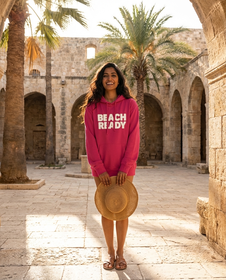 The 'Beach Ready' phrase captures the lifestyle of passionate travelers who spend their days exploring coastlines, soaking up sun, and enjoying seaside getaways.