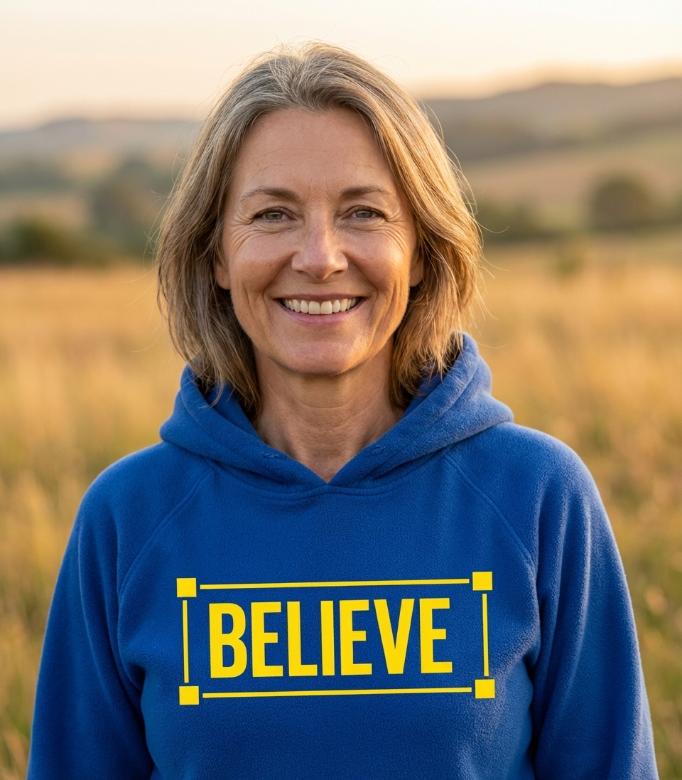 The 'Believe' phrase captures the lifestyle of optimistic individuals who strive for personal growth, encourage others, and maintain a positive outlook.