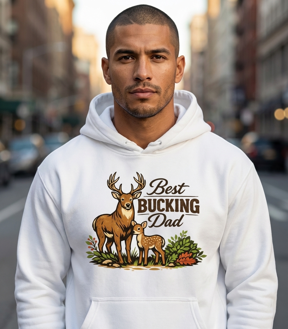 The phrase "Best BUCKING Dad" is a clever pun on "buck," a male deer, and a common colloquialism, implying "Best F***ing Dad." It's a lighthearted and affectionate way to celebrate a father's role, particularly appealing to dads with a love for hunting, wildlife, or the great outdoors, showcasing their strong, protective nature.