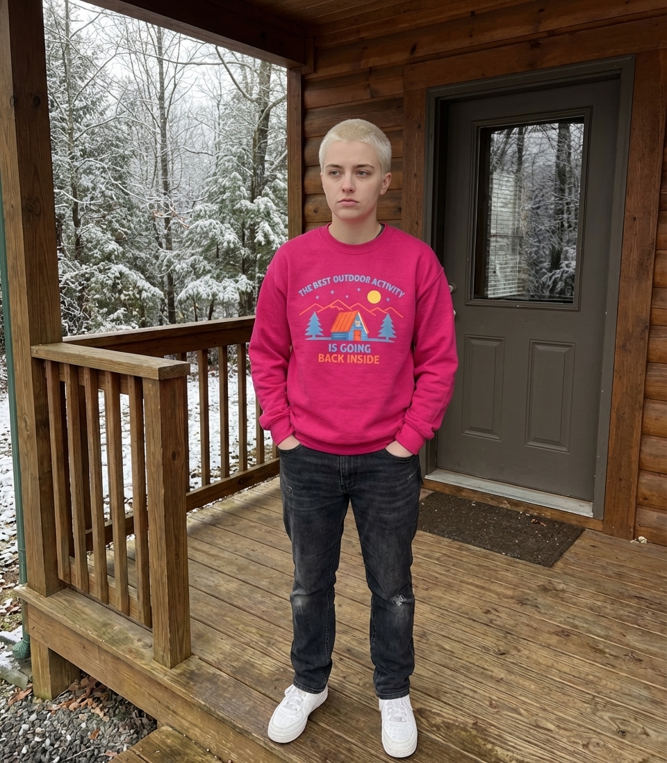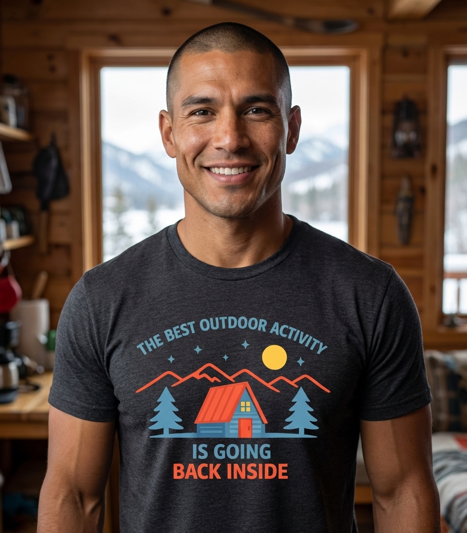 The 'Best Outdoor Activity' phrase captures the lifestyle of people who prefer cozy indoor comforts over rugged outdoor adventures.