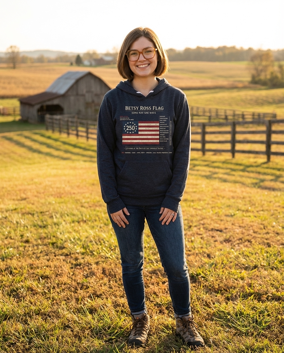 This Betsy Ross flag design captures the spirit of patriotic Americans who honor the nation's 250th anniversary and its foundational history.