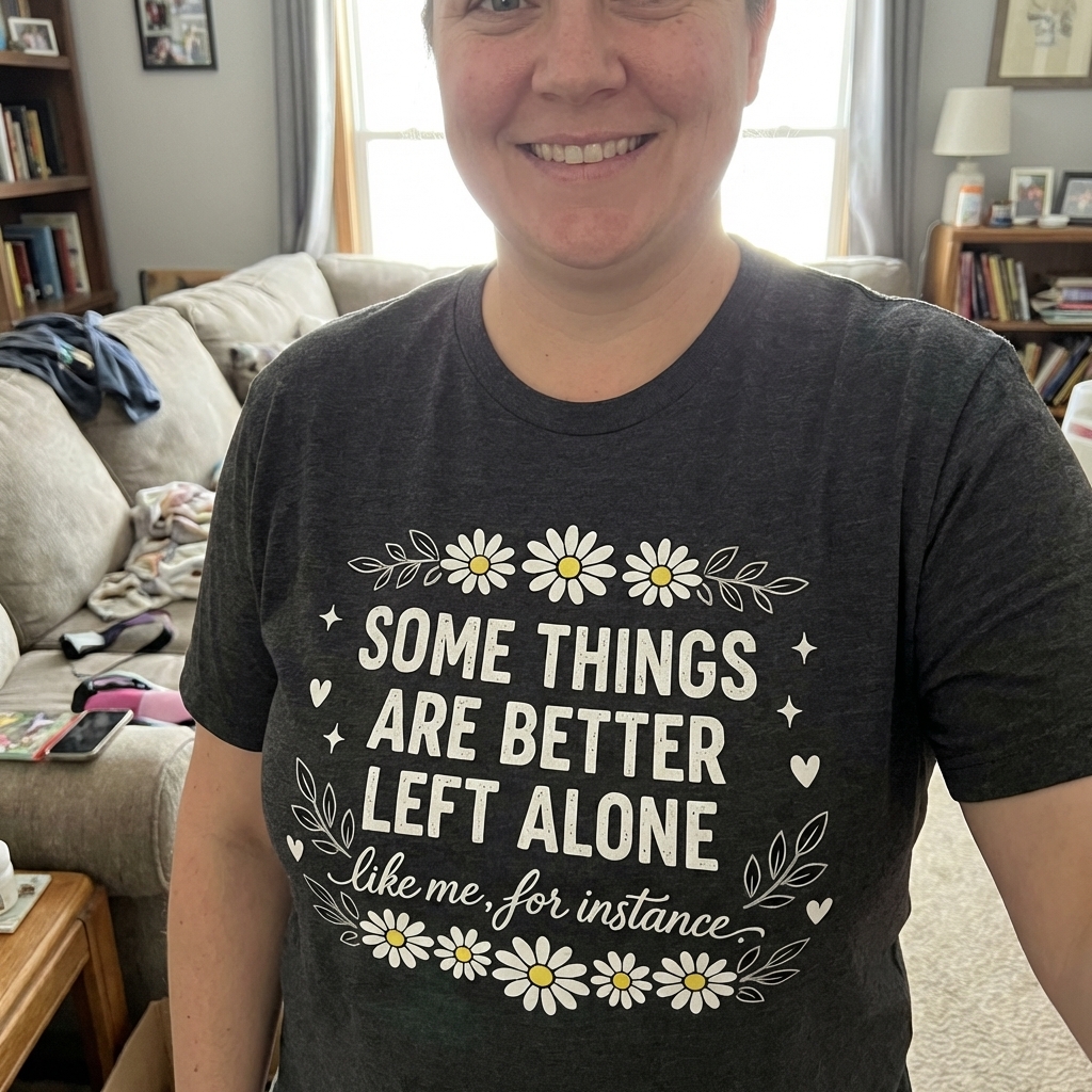 The phrase 'Some Things Are Better Left Alone like me, for instance' is a lighthearted, self-deprecating declaration often used by those who value their personal space. It's a witty way of expressing a preference for solitude, presented with a humorous and relatable twist for fellow introverts or anyone appreciating a clever quip.