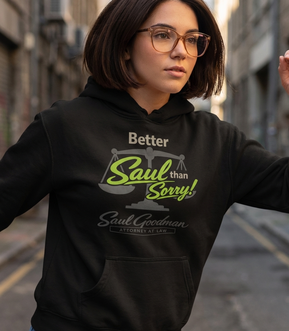 The "Better Saul Than Sorry" phrase captures the clever wit of fans who appreciate legal drama, iconic TV characters, and a good pun.