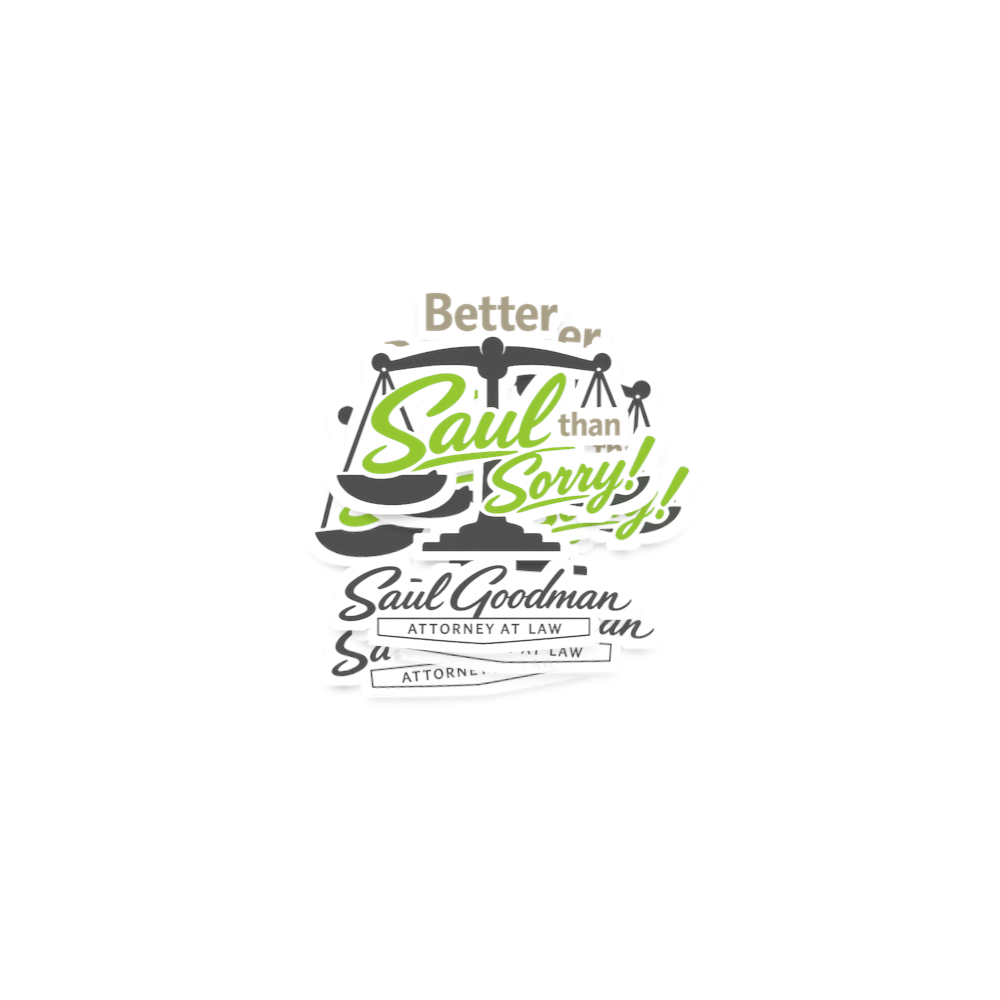 This design cleverly plays on the well-known idiom "Better safe than sorry," reimagining it with a legal twist. Featuring a balance scale, the phrase "Better Saul than Sorry!" is prominently displayed, making a direct reference to a popular fictional lawyer.