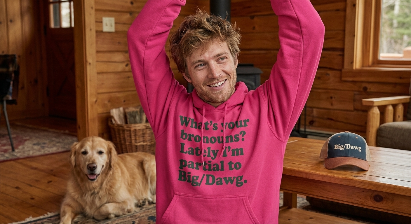 The 'Bronouns Big Dawg' phrase captures the casual, humorous lifestyle of those who enjoy lighthearted social commentary and playful self-identification.
