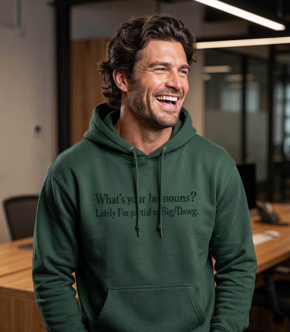 Yes! Check the style selector above to see all available options including hoodies and sweatshirts for the Big Dawg Bronouns graphic.