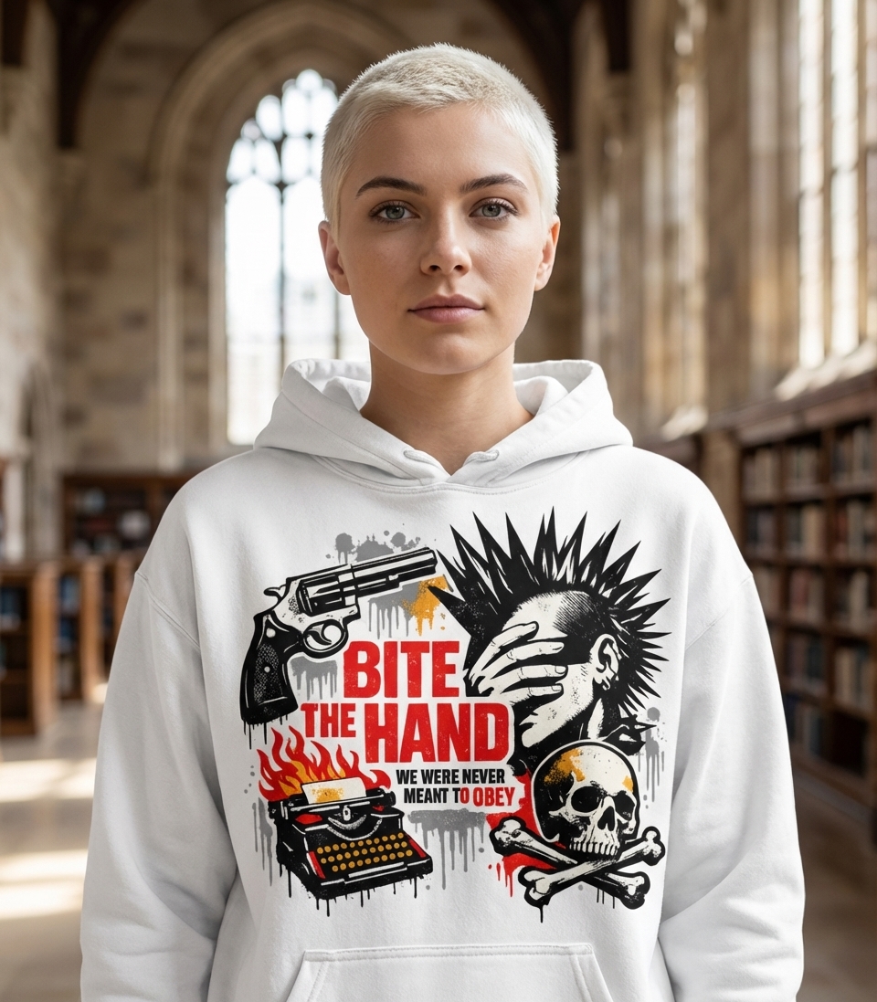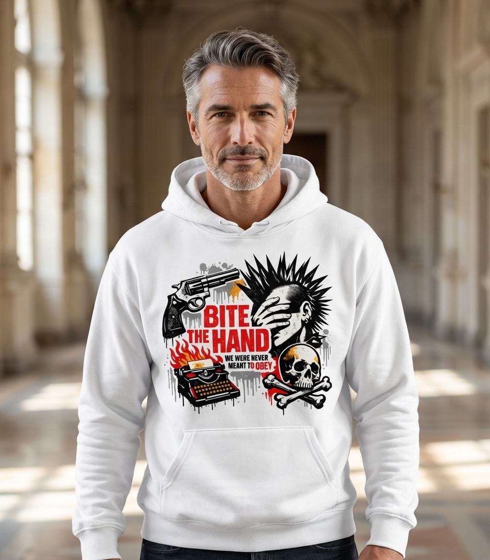 The 'Bite The Hand' phrase encapsulates the spirit of individuals who challenge authority, question norms, and live with unapologetic independence.