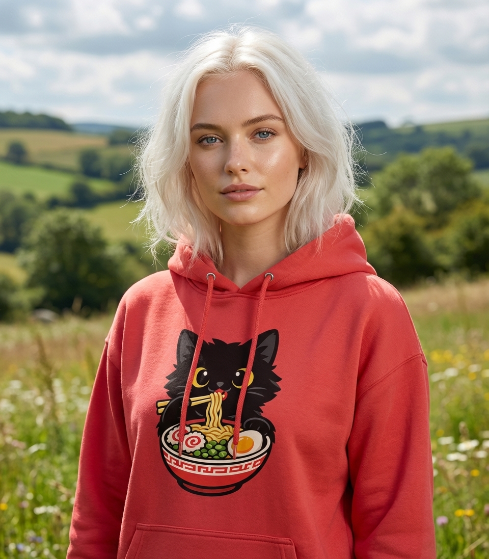 Yes! Check the style selector above to see all available options including hoodies and sweatshirts for the Black Cat Ramen Lover graphic.