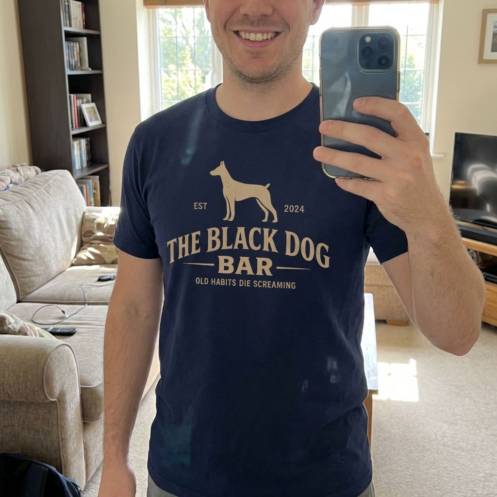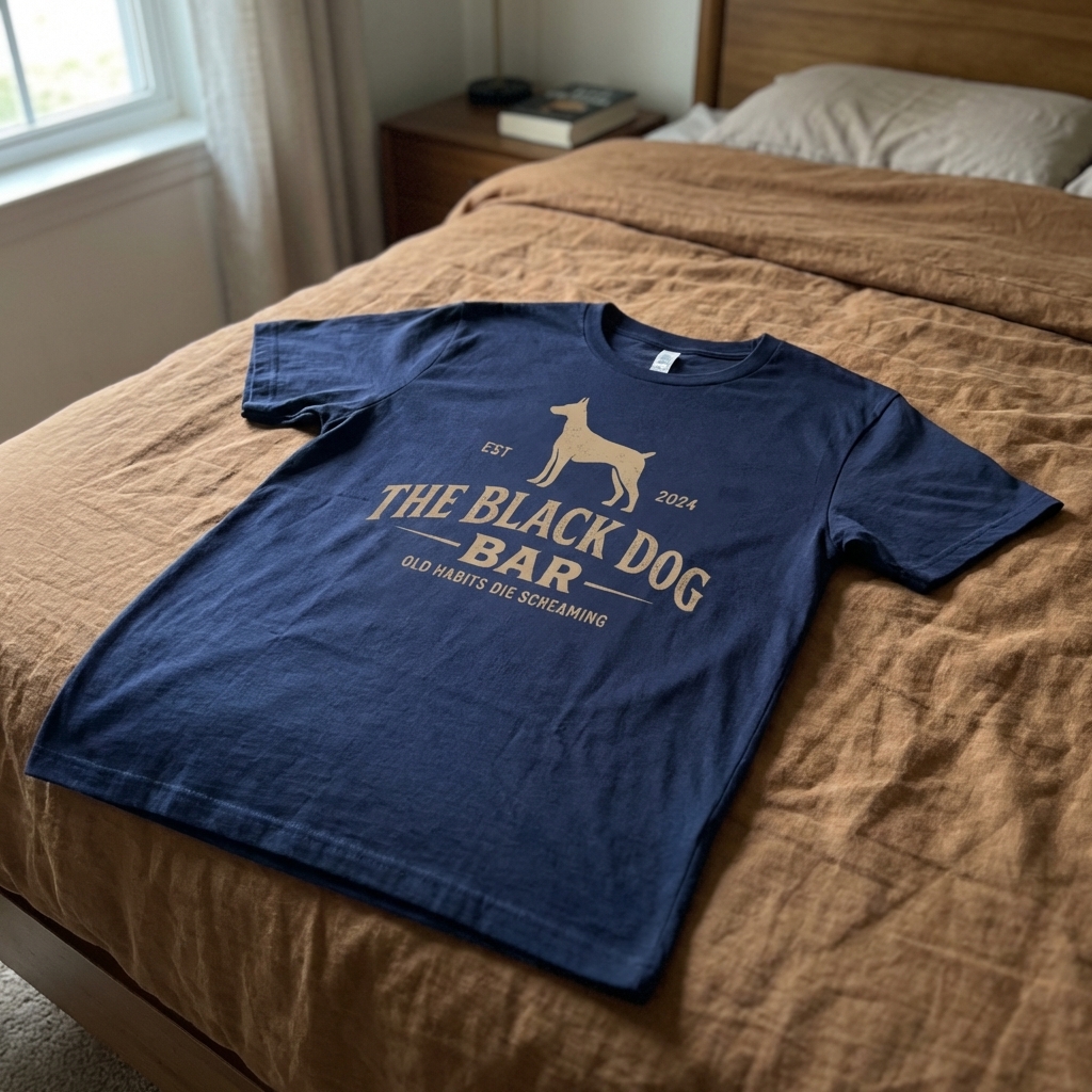 The "Black Dog Bar" design captures the attitude of those who appreciate classic pub aesthetics, bold statements, and the loyal spirit of canine companions.