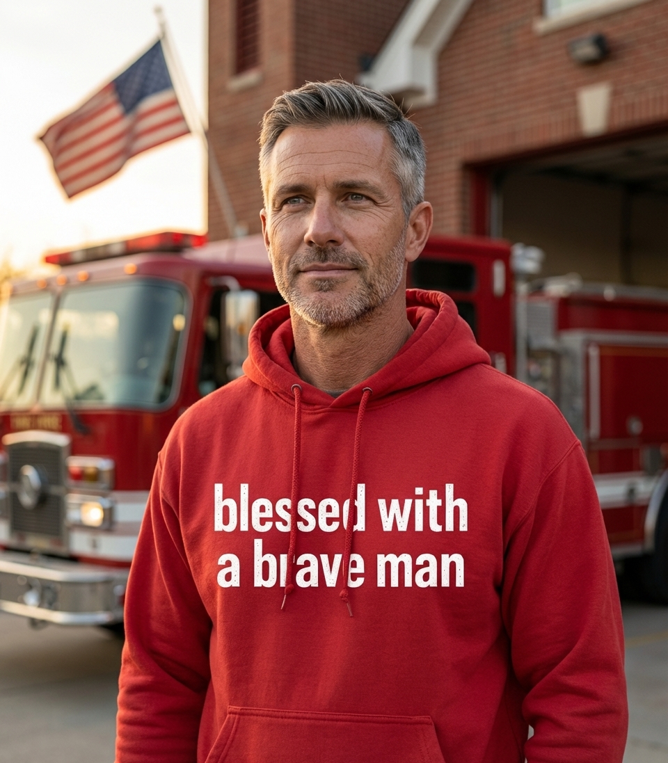 The phrase "blessed with a brave man" signifies profound admiration and thankfulness for a partner, spouse, or family member who serves in a courageous profession. It highlights the selflessness and valor of individuals such as first responders or military personnel, acknowledging the love and support from those close to them.