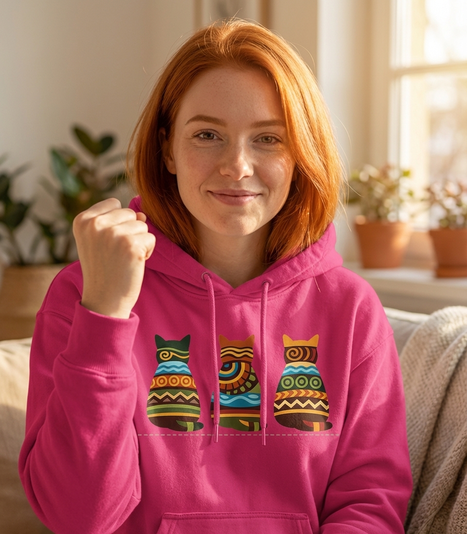 Yes! Check the style selector above to see all available options including hoodies and sweatshirts for the Boho Patterned Cats graphic.