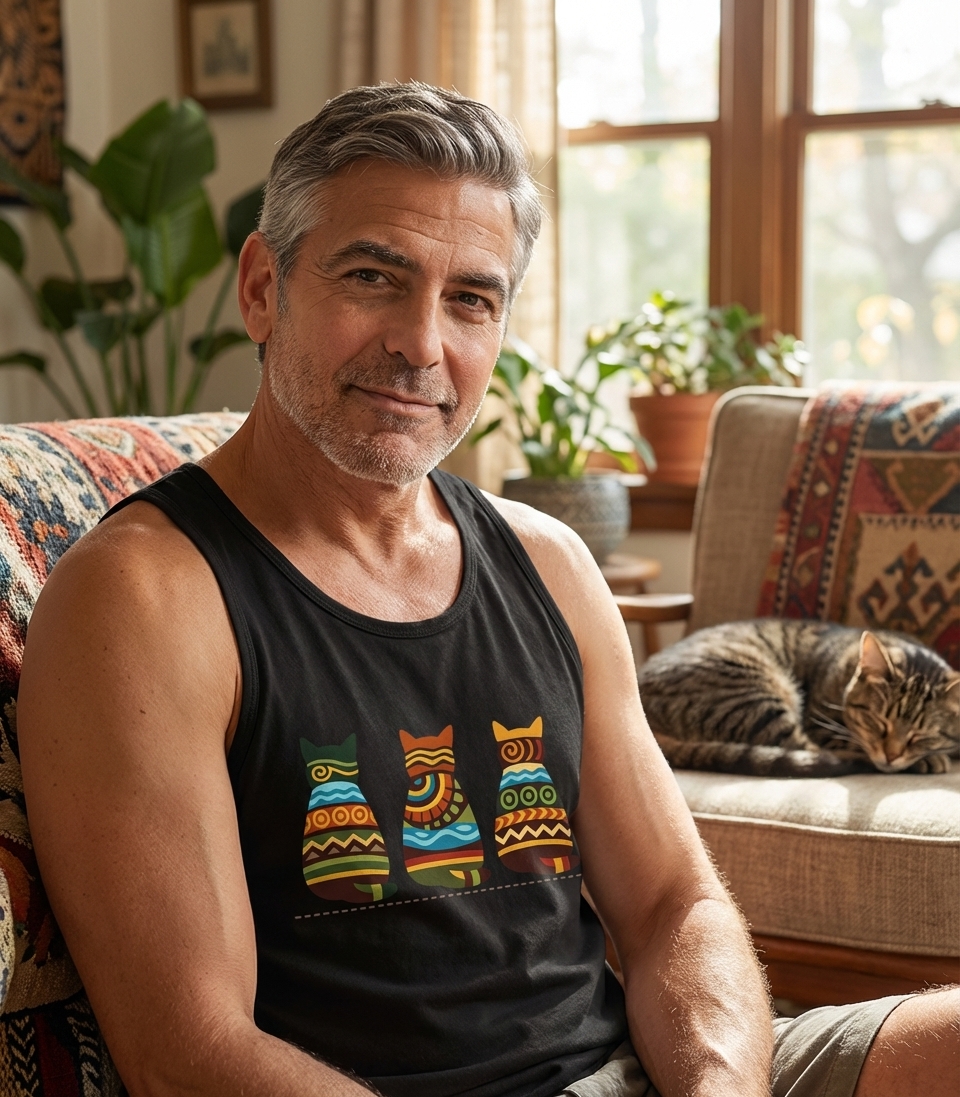While there isn't a specific phrase, the artwork embodies a celebration of cultural patterns and feline elegance. It evokes a sense of global artistry, connecting the wearer to diverse design traditions.