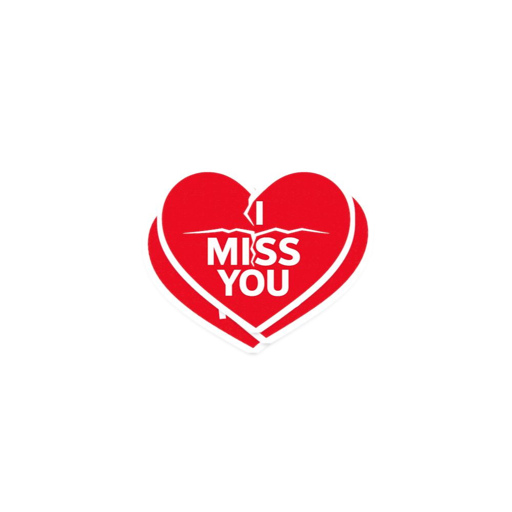 This poignant design features a classic red heart, strikingly broken down the middle, with the impactful message "I MISS YOU" emblazoned in white. The contrasting colors and simple graphic style amplify the emotional weight of the sentiment.