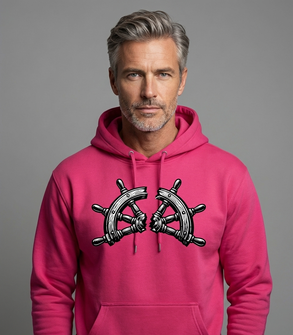 This striking design of a fractured ship's wheel embodies the spirit of nautical enthusiasts who bravely navigate life's unexpected turns and embrace resilience.