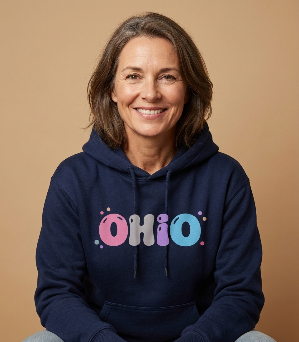 The word "Ohio" refers to the U.S. state, known for its rich history, diverse landscapes, and vibrant communities. This design serves as a simple yet clear expression of state pride and a personal connection to the Buckeye State.