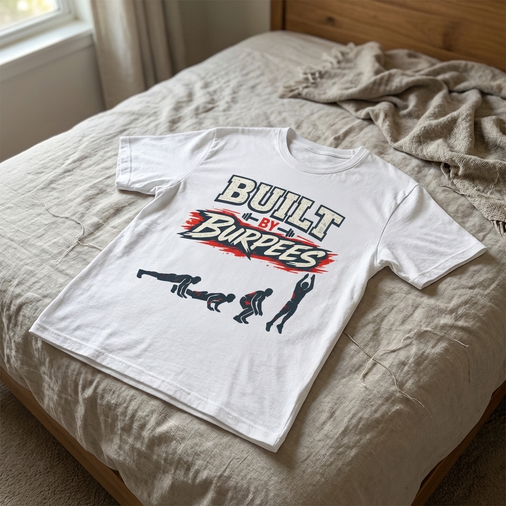 The "Built By Burpees" phrase captures the lifestyle of passionate fitness enthusiasts who push their limits, embrace high-intensity workouts, and build strength.