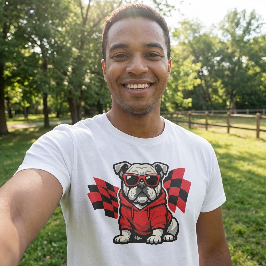 Seriously, this tee is super soft and the material feels really good quality right away. The bulldog racing flags design is awesome; it's got that cool abstract look without being too loud, perfect for everyday wear. Totally happy with this one, it's definitely going into my regular rotation.