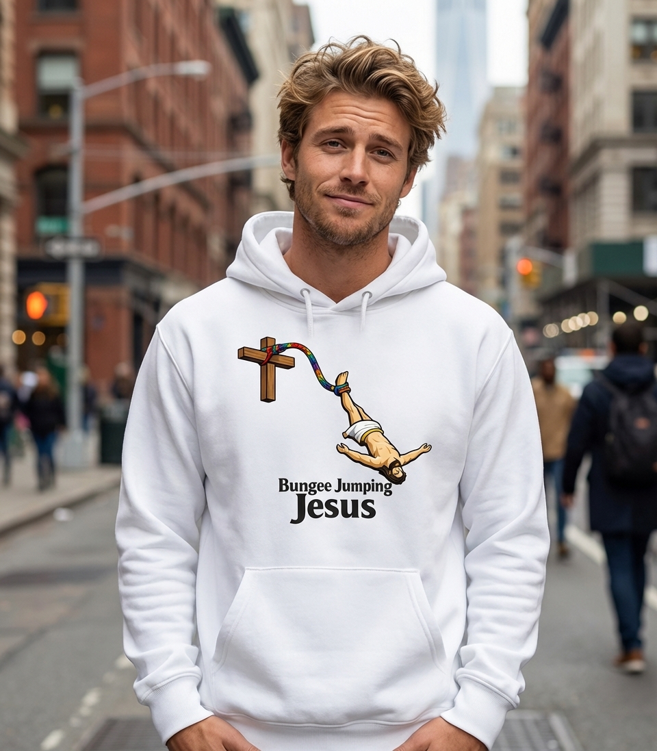 Yes! Check the style selector above to see all available options including hoodies and sweatshirts for the Bungee Jumping Jesus graphic.