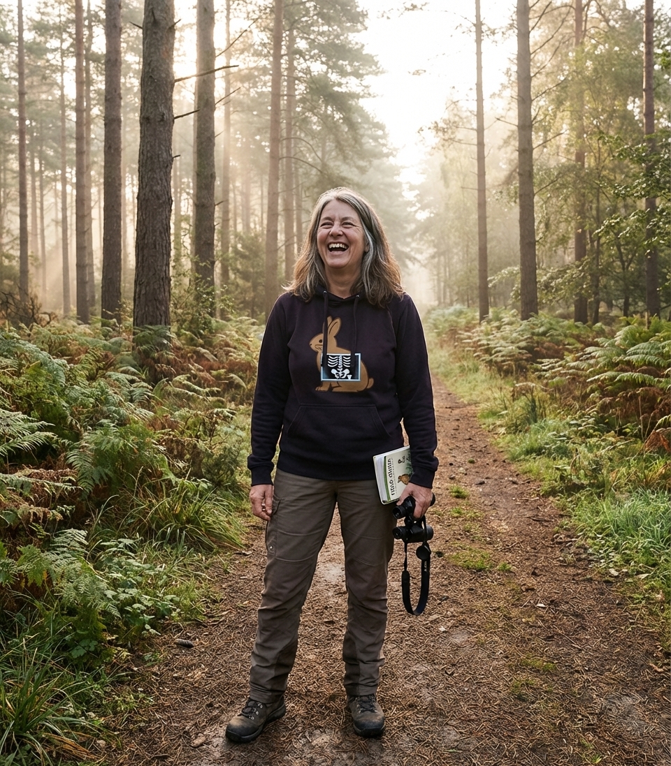 This unique graphic features a charming brown rabbit in profile, showcasing its internal structure with a stylized X-ray view of its skeleton. The artwork blends a cute, simplified illustration of a bunny with an intriguing anatomical detail, creating a playful and educational visual.