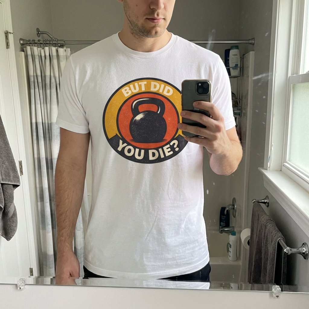 Got this tee and honestly, it's exactly what I hoped for. The 'But Did You Die' kettlebell graphic is subtle but still funny, and the material feels really nice on. Definitely a new favorite for gym days or just running errands.