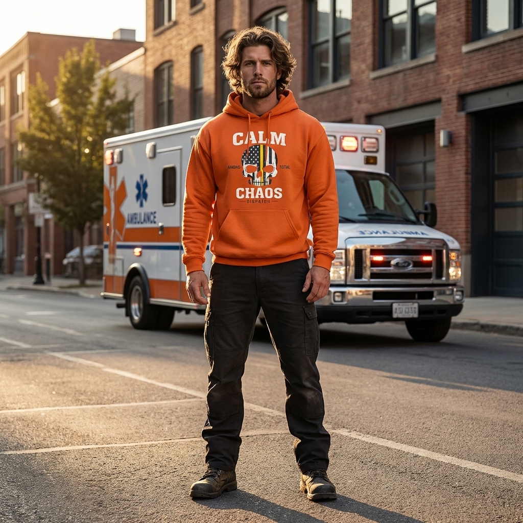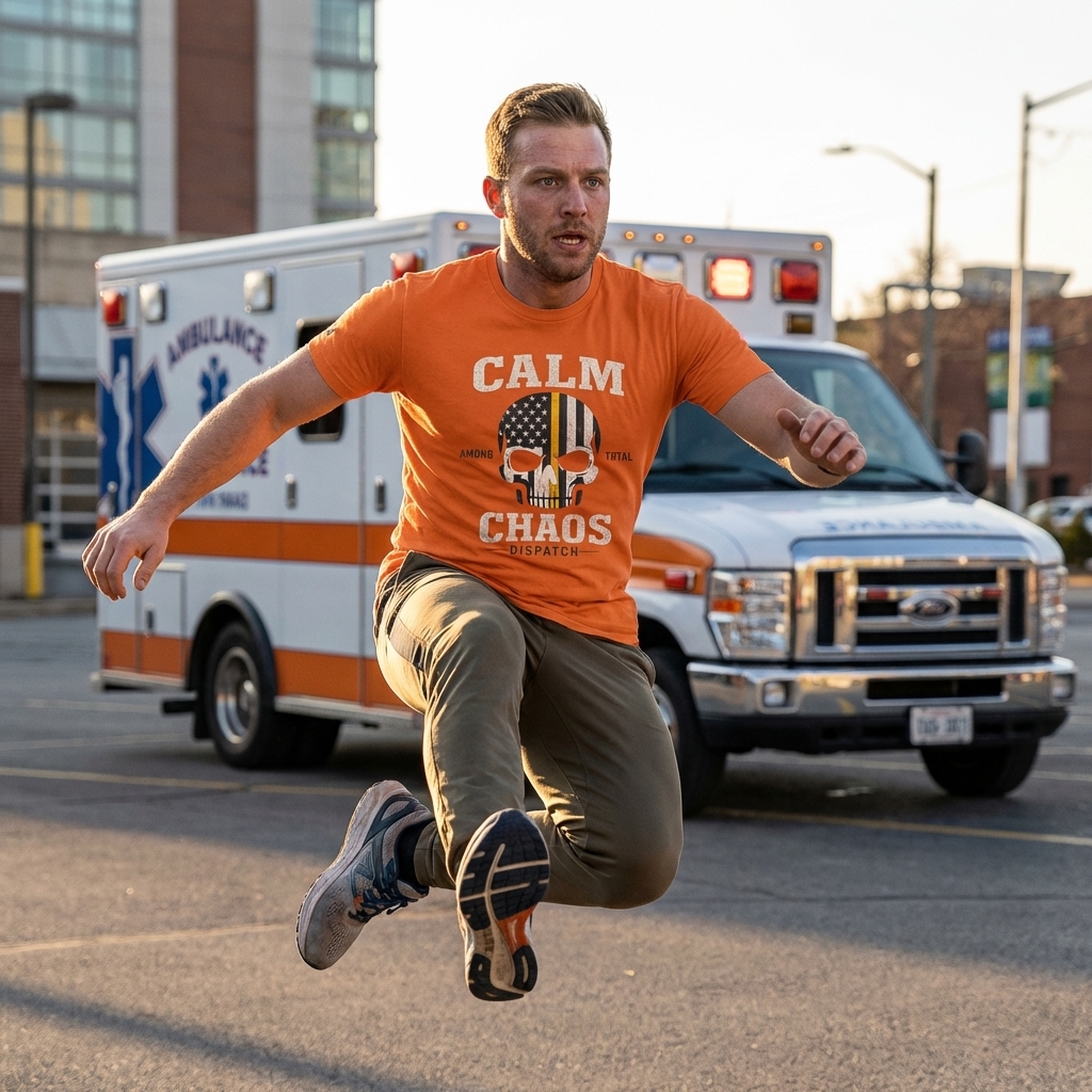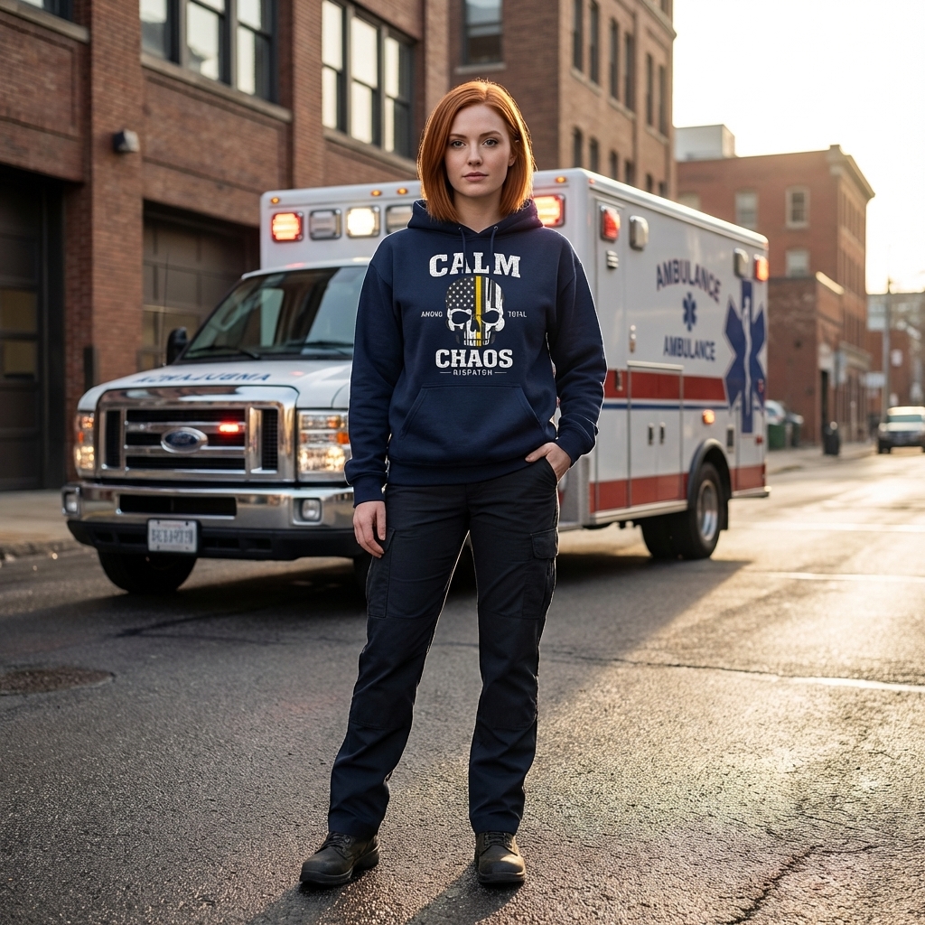 The 'Calm Among Total Chaos' phrase captures the lifestyle of dedicated dispatchers who provide vital support, maintain composure, and guide emergency responses.