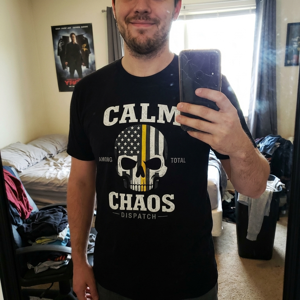 okay, this 'calm chaos dispatch' tee is legit comfy, like, surprisingly soft fabric. the design itself is way cooler than i expected too, it's got this subtle energy that just works. totally happy with this purchase, gonna be wearing it a lot.