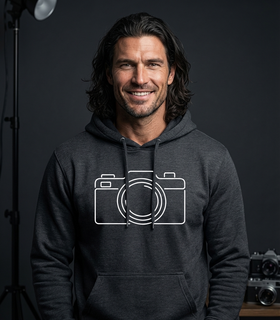 The clean camera outline captures the essence of passionate photographers who spend their days capturing moments, framing memories, and exploring visual storytelling.