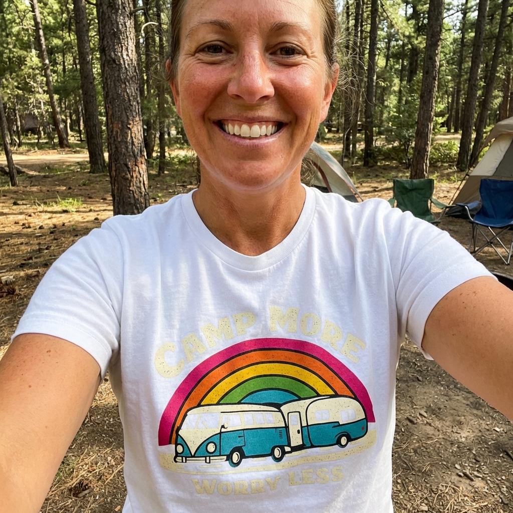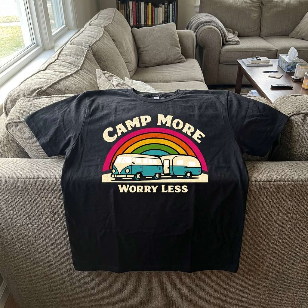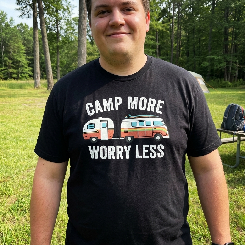 Okay, this shirt is exactly what I wanted. It's super comfy, like, really soft fabric, and the 'Camp More Worry Less' design just makes me smile. Definitely a new favorite for casual days.