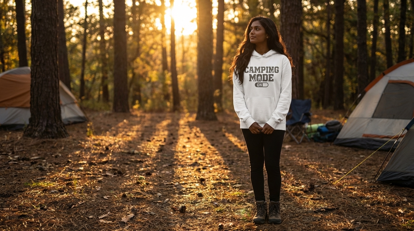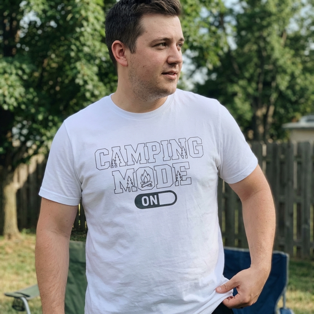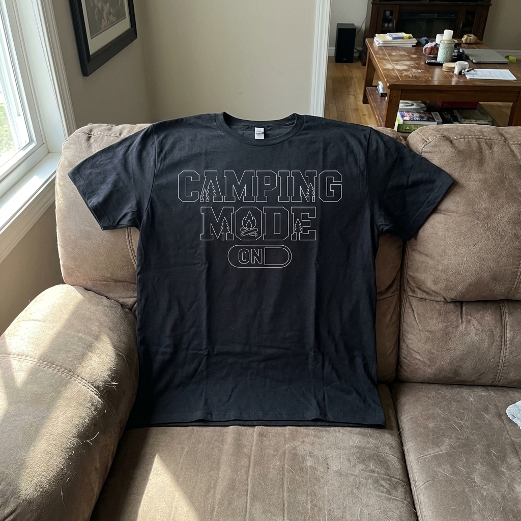 Okay, so this "Camping Mode On" tee just arrived and I'm honestly impressed with how soft the fabric is. it's one of those shirts you just wanna live in, plus the design totally nails that chill, outdoorsy vibe without being too much.